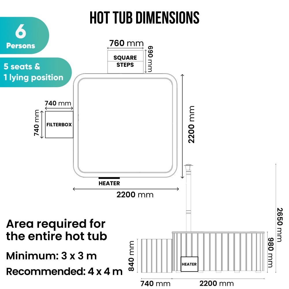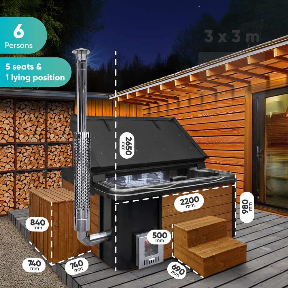 Configure Square Wood Fired Hot Tub for 6-8 Persons | External Heater