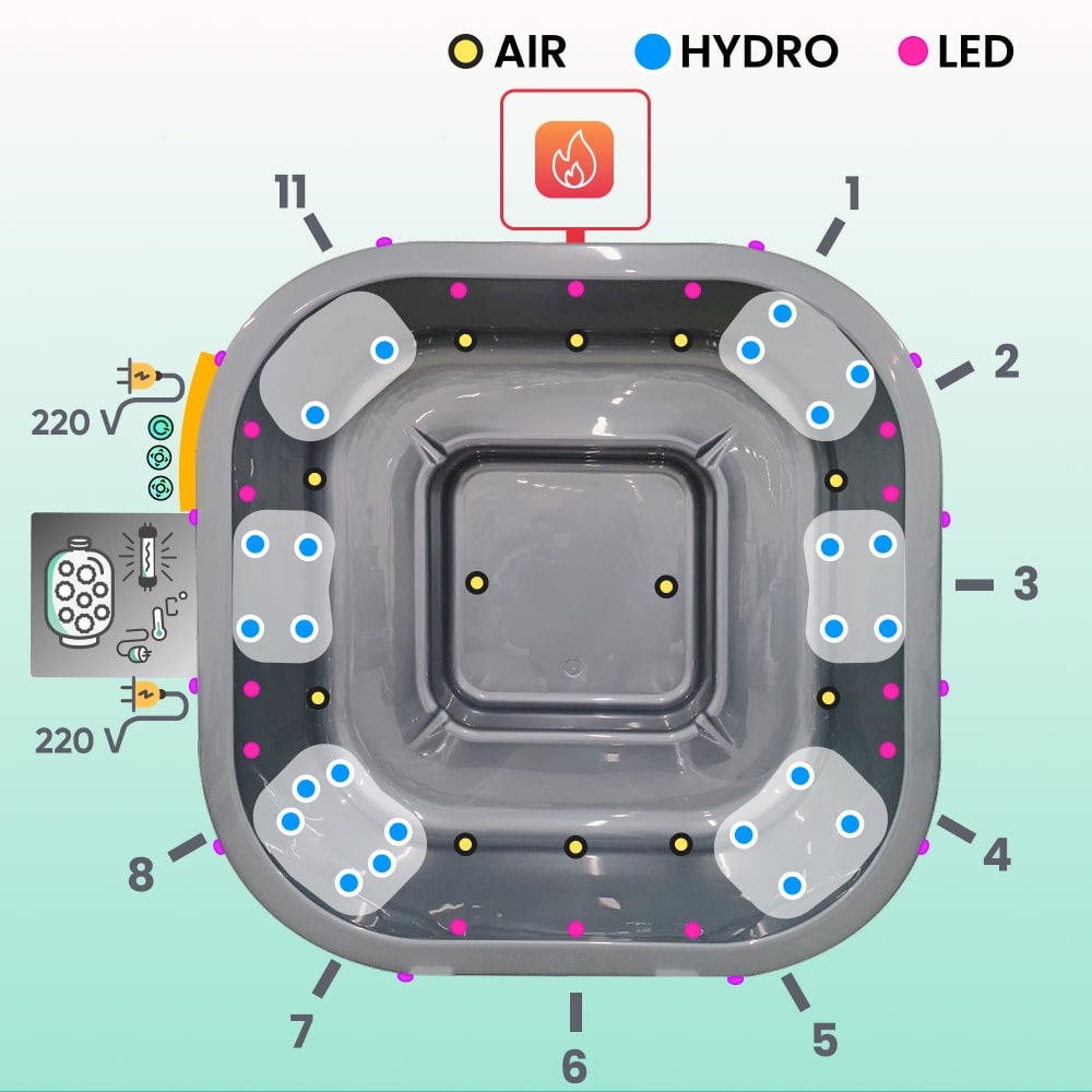 - Air jet massage system, 12 jets, 0.7 kW (£ 550)