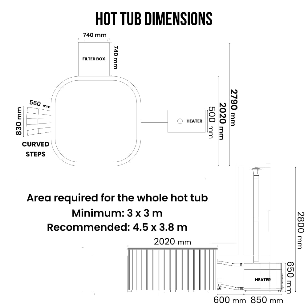 Premium Sand Filter Square Wood Fired Hot Tub | Best Configuration | External Heater