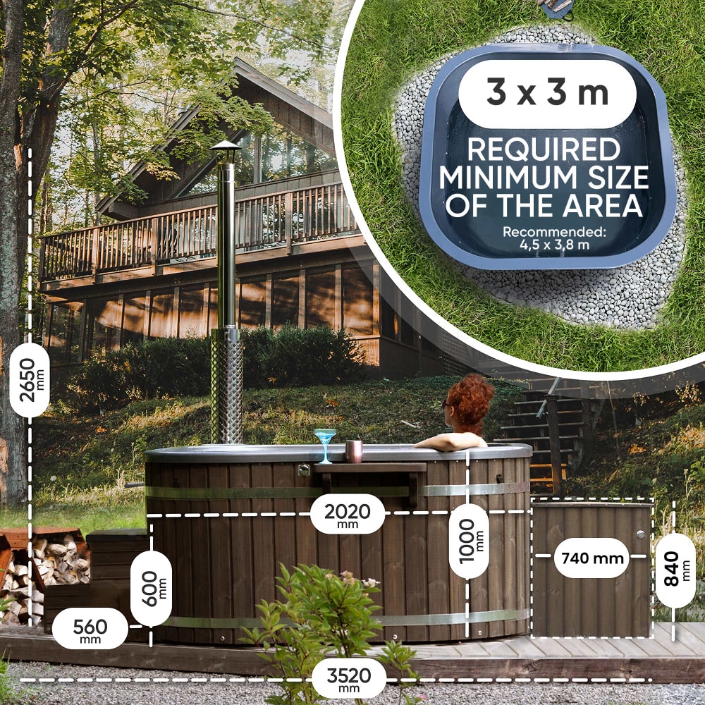 Configure Square Wood Fired Hot Tub for 6-8 Persons | External Heater