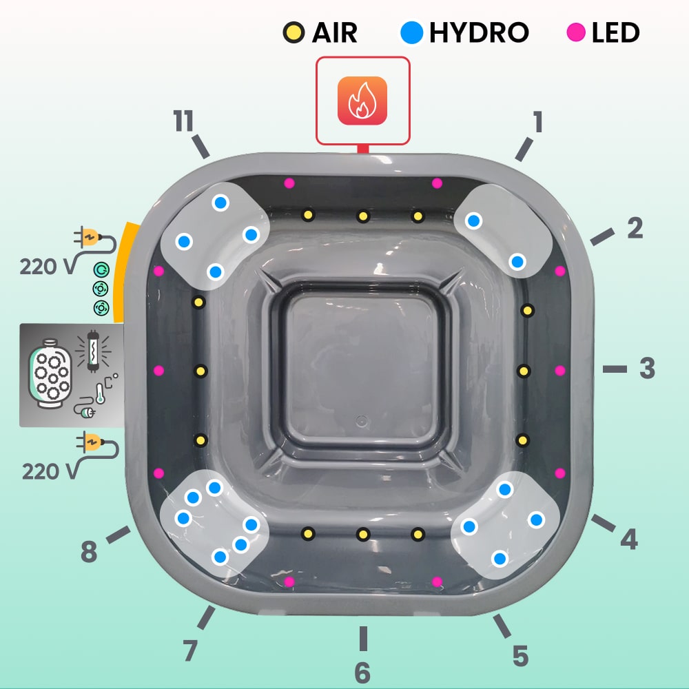 - Air jet massage system, 12 jets, 0.7 kW (£ 550)