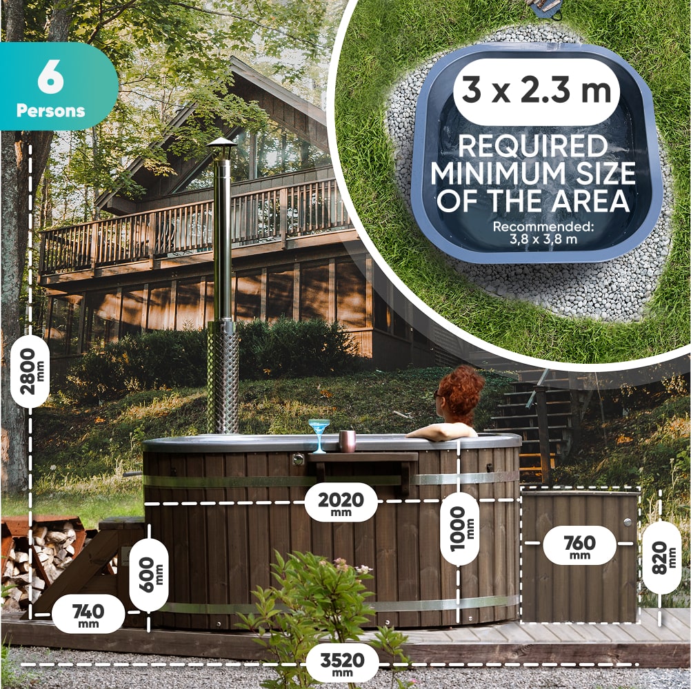 Configure Square Wood Fired Hot Tub for 6-8 Persons | External Heater