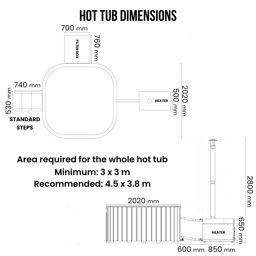 Super Offer Premium Square Wood Fired Hot Tub with Sand Filter | External Heater