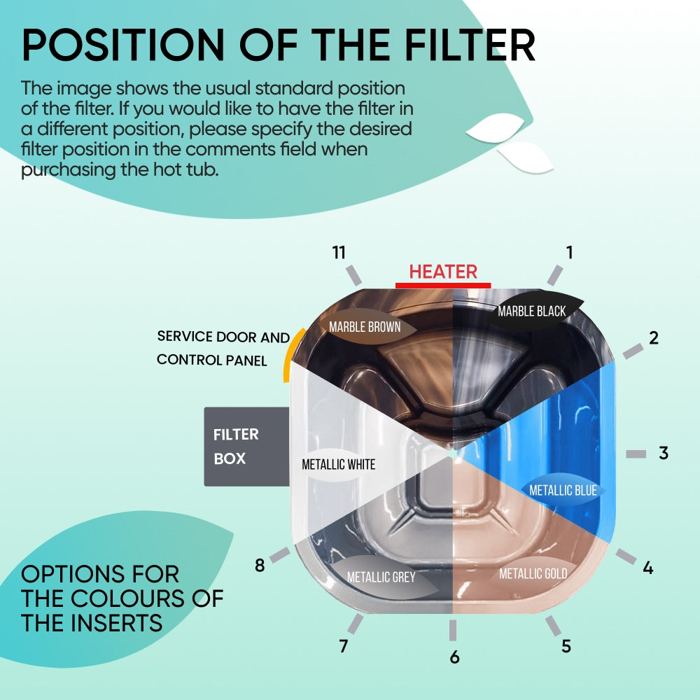 Our configurable hot tubs let you personalise every detail — and we reward that flexibility with lower individual component prices, using the same premium parts as in our pre-configured sets.
