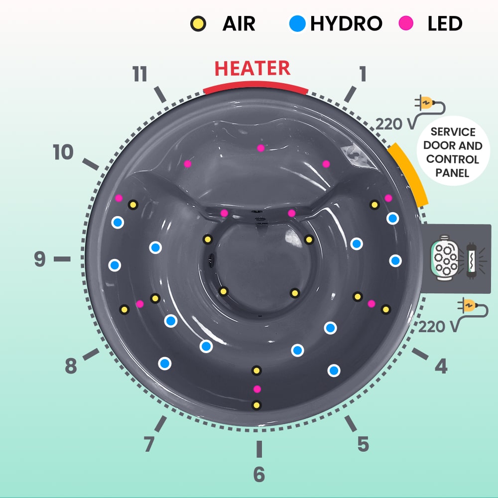All-inclusive hot tub with a grey insert. This configuration includes: