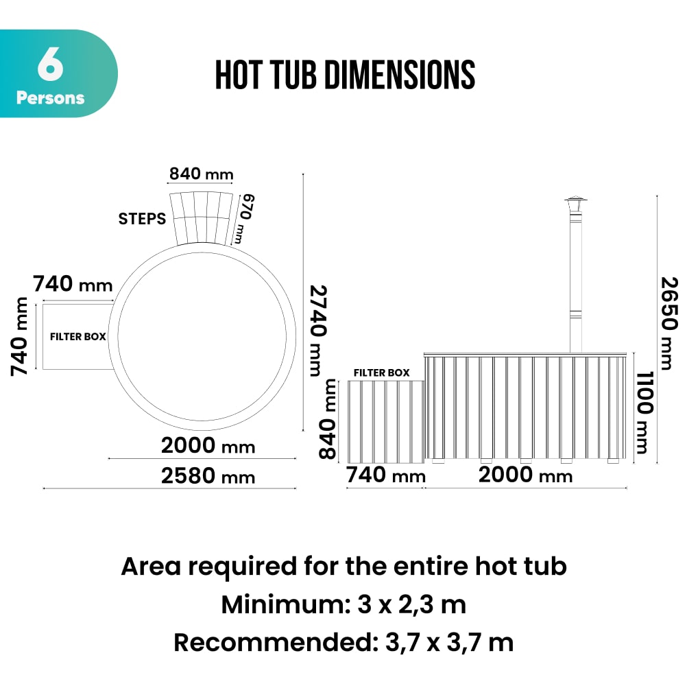 Configure Square Wood Fired Hot Tub for 6-8 Persons | External Heater