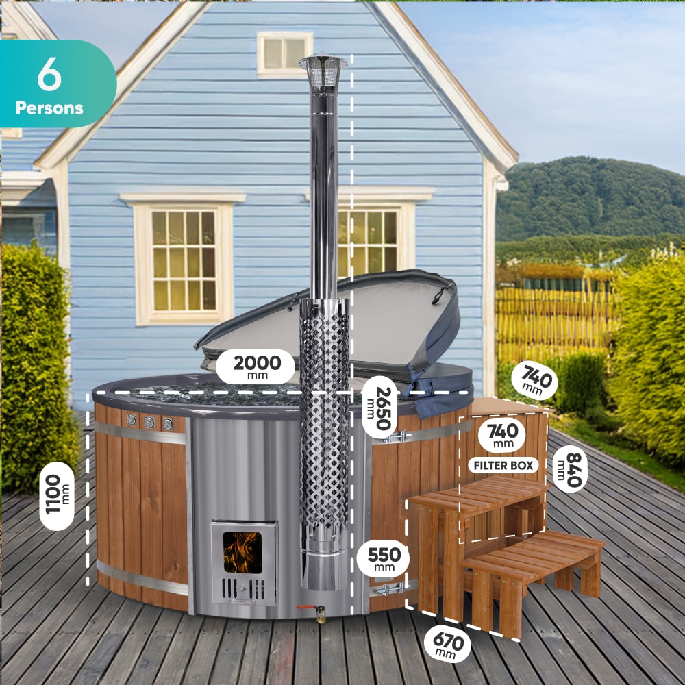 Super Offer Wood Fired Hot Tub | Grey 4-6 | Preconfigured | Sand Filter + UV-C | AISI316