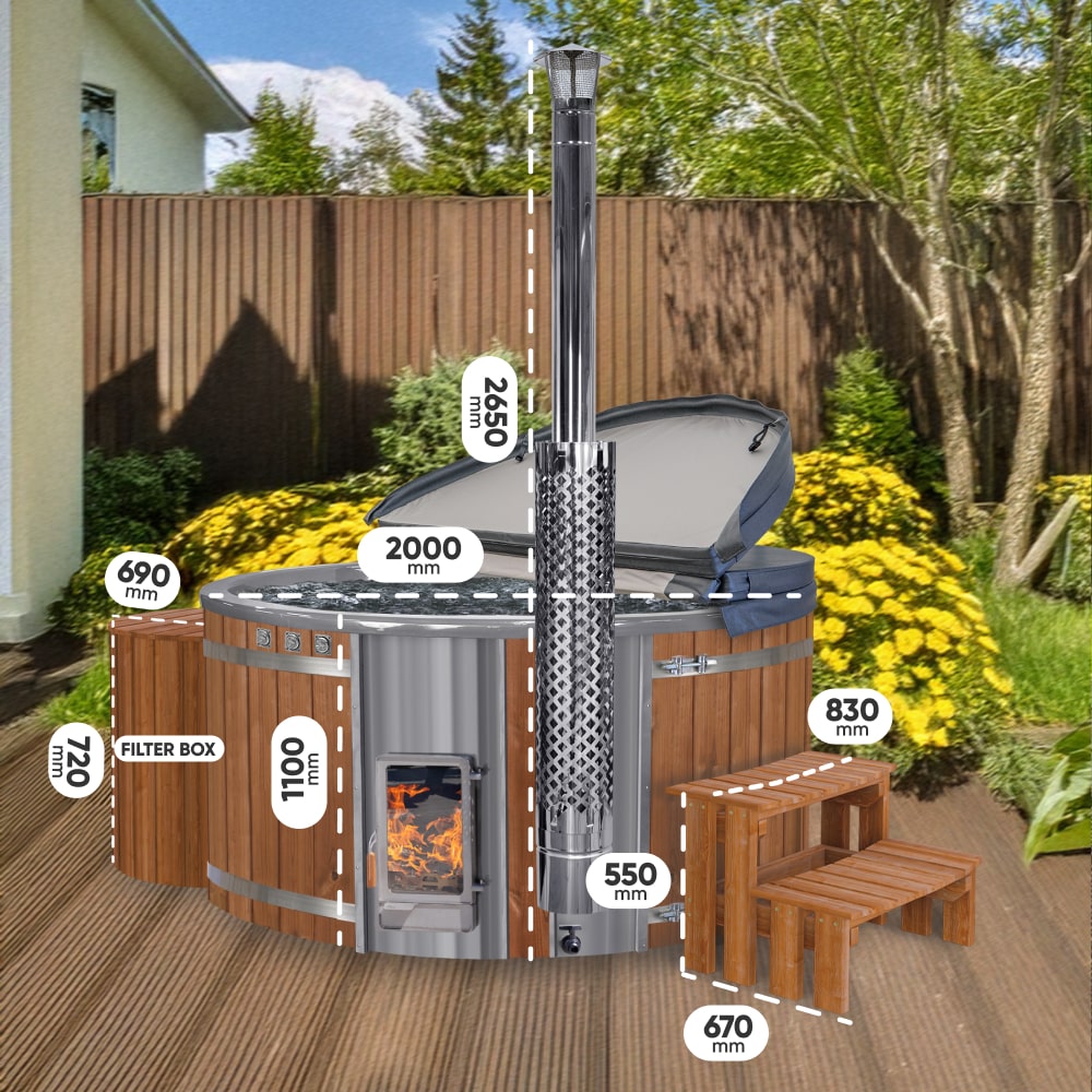 Wood Fired Hot Tub with round Premium filter and Verta heater | Best