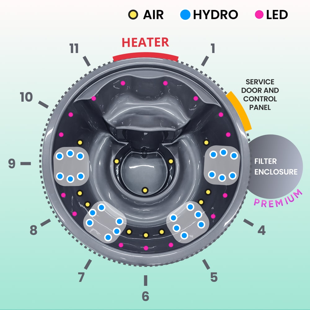 All-inclusive hot tub with a acrylic insert and Premium filtration. This configuration includes: