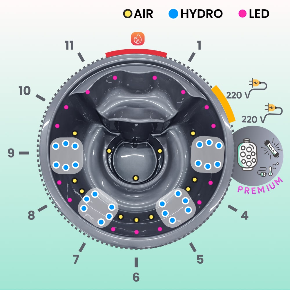 - Air jet massage system, 12 jets, 0.7 kW (£ 550)