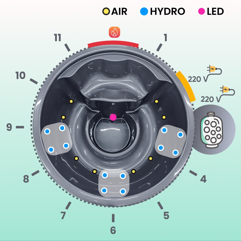 - Air jet massage system, 8 jets, 0.7 kW (£ 275)