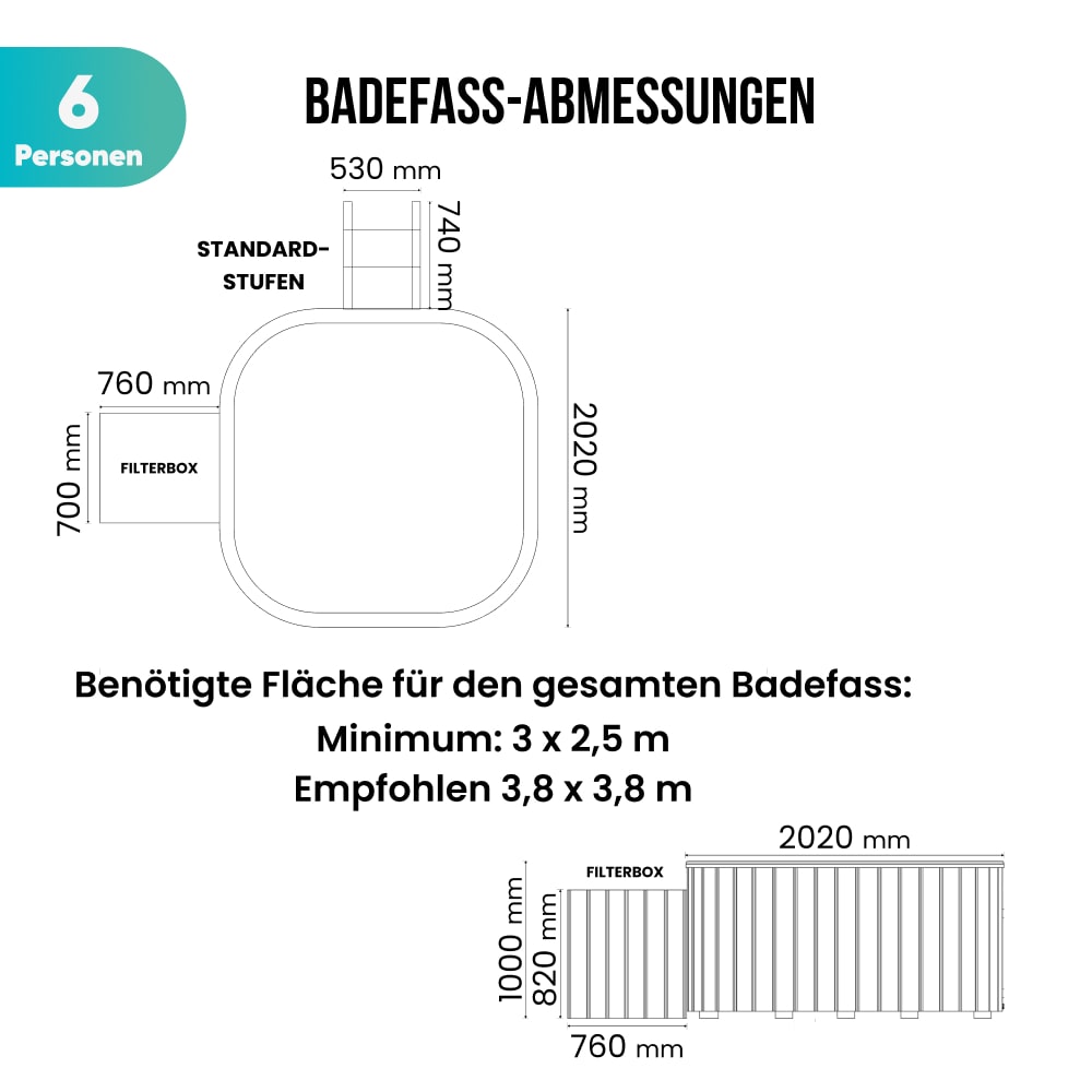 - 4-6 Personen Hot Tub Badefass mit monochromem Acryleinsatz (2585 €)