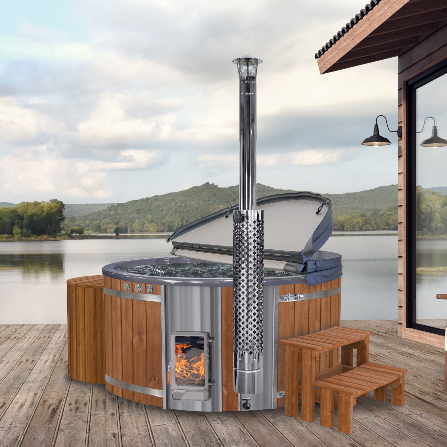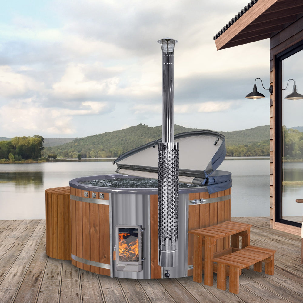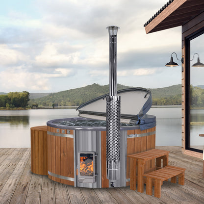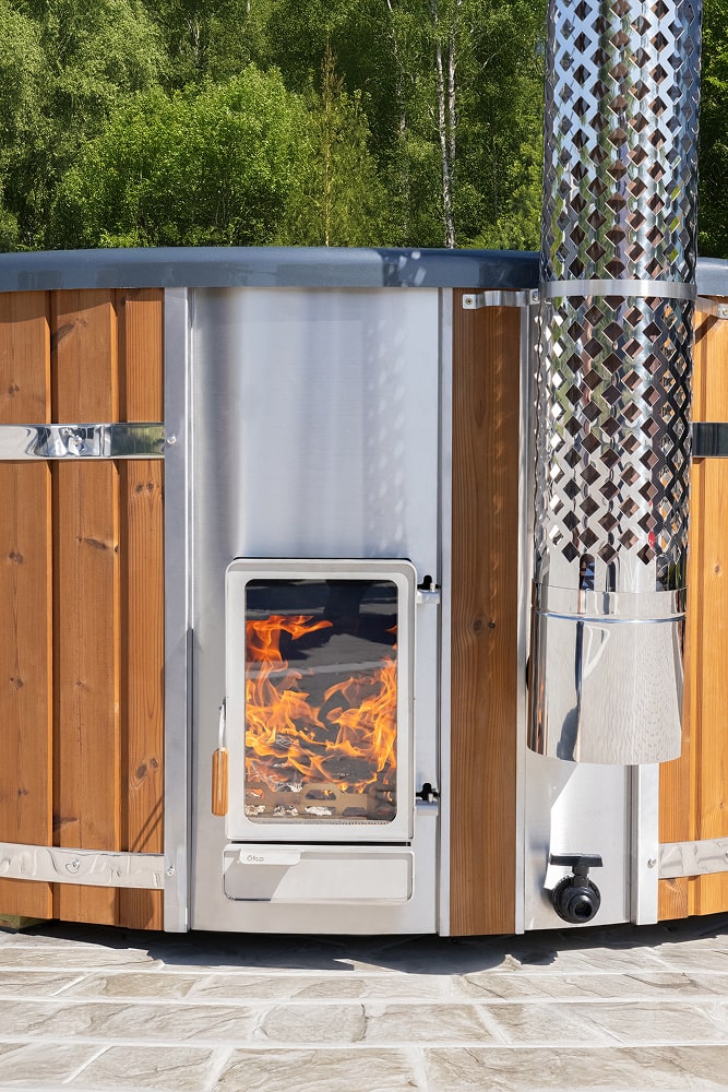 - Integrierter Holzofen aus Edelstahl AISI 316, mit Schornstein 2 Meter (900€)