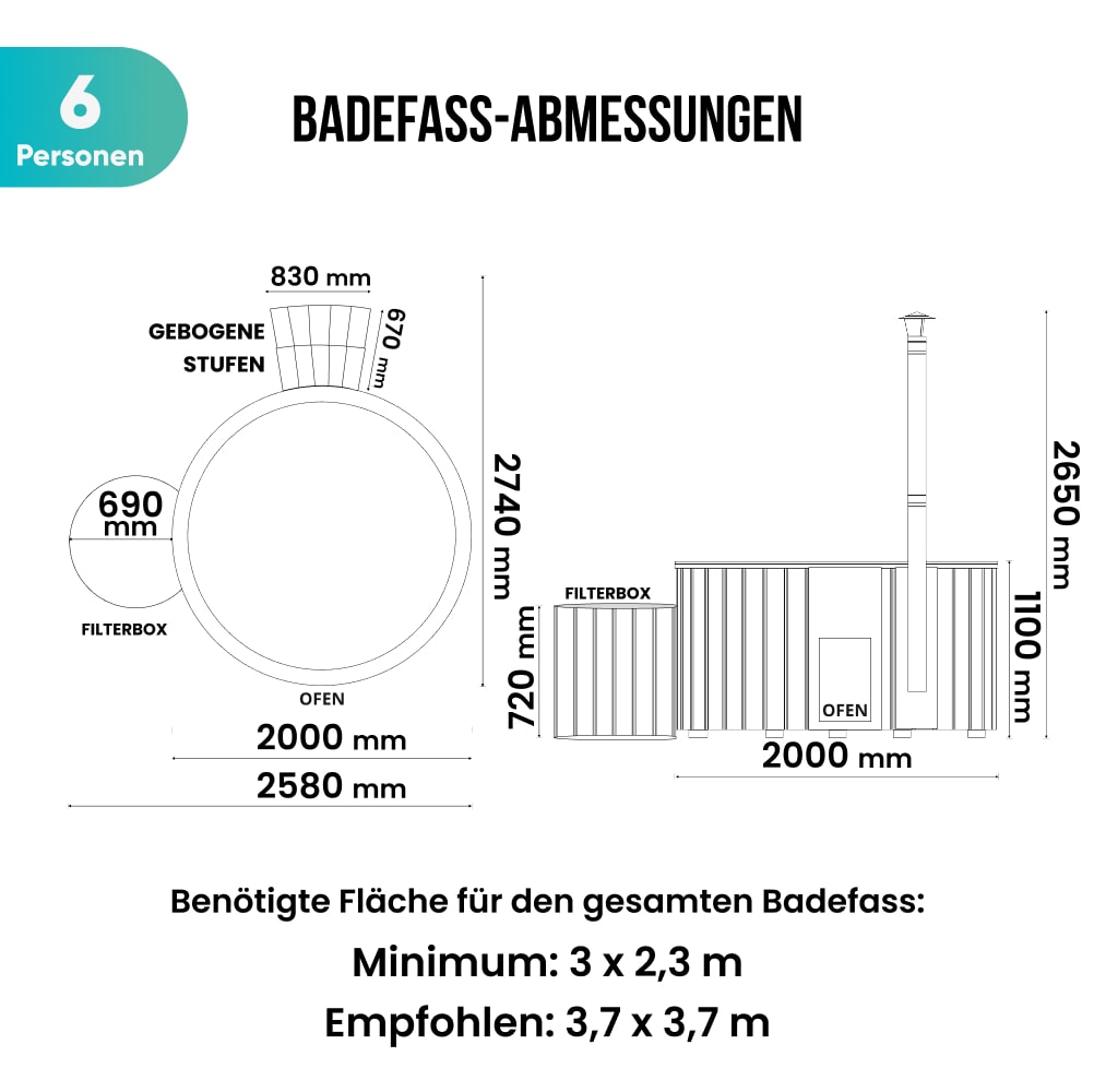 - 4-6 Personen Hot Tub Badefass Einsatz aus Acryl (1918 €)
