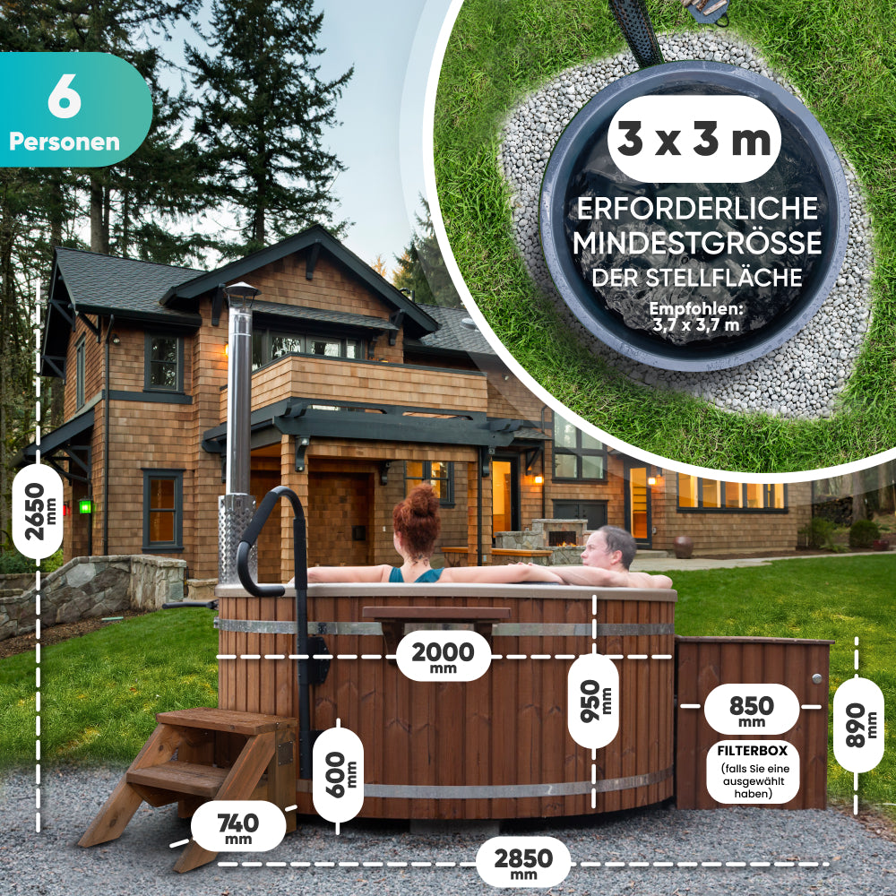 Konfigurierbar Whirpool mit Holzofen Eckig für 6-8 Personen | Externe Ofen