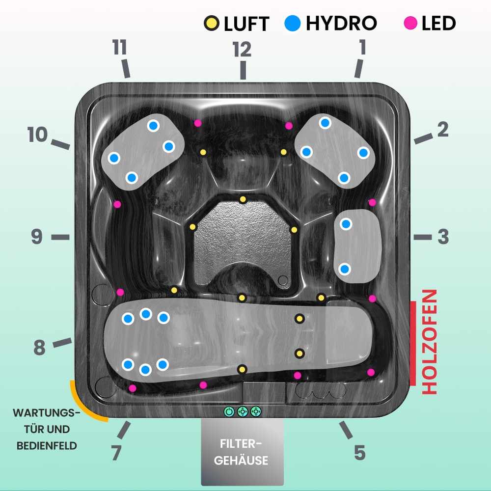Hot Tub GFK | Bestseller-Konfiguration | 16 Hydro- und 12 Luftdüsen