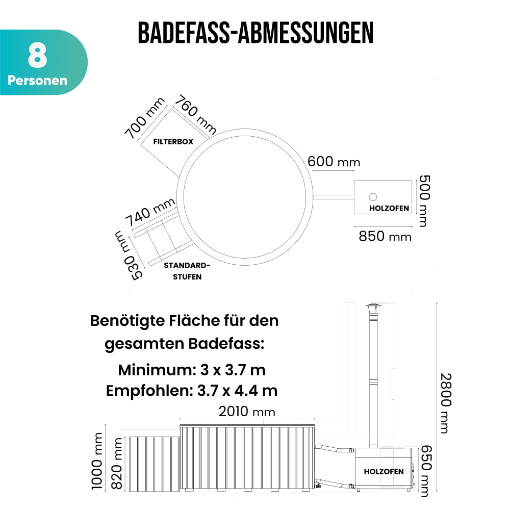 • 6-8 Personen Hot Tub Badefass Einsatz aus Acryl (2370 €)