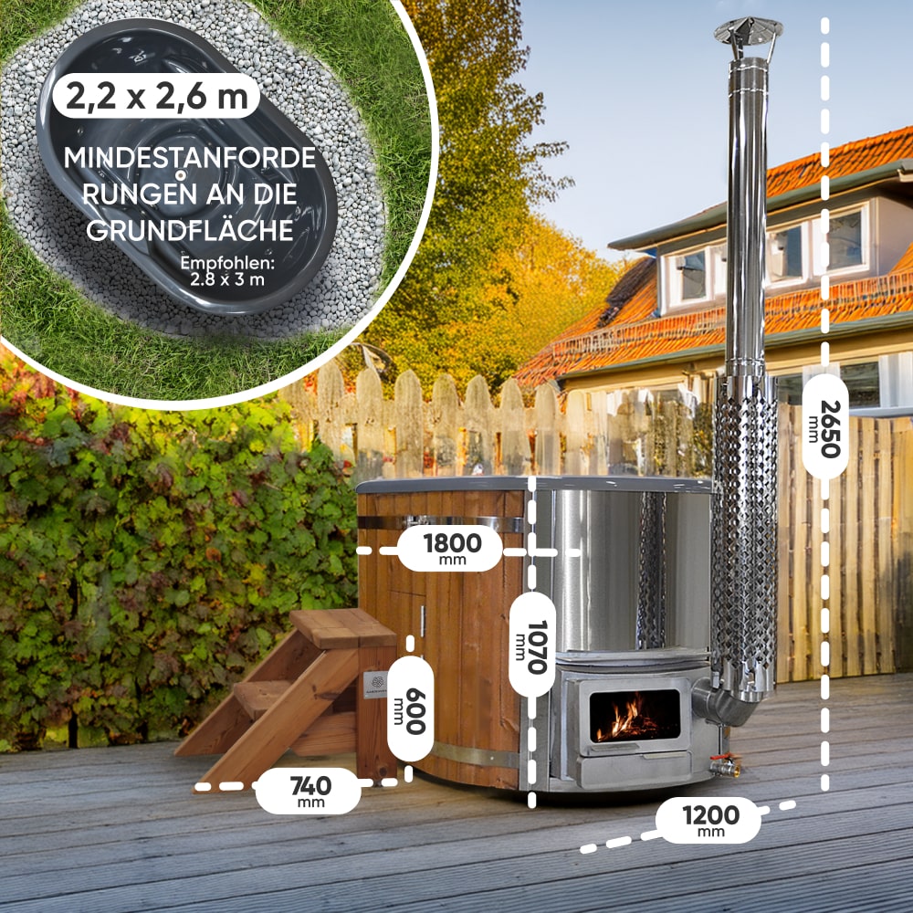 - Integrierter Holzofen aus Edelstahl AISI 304, mit Schornstein 2 Meter (550€)