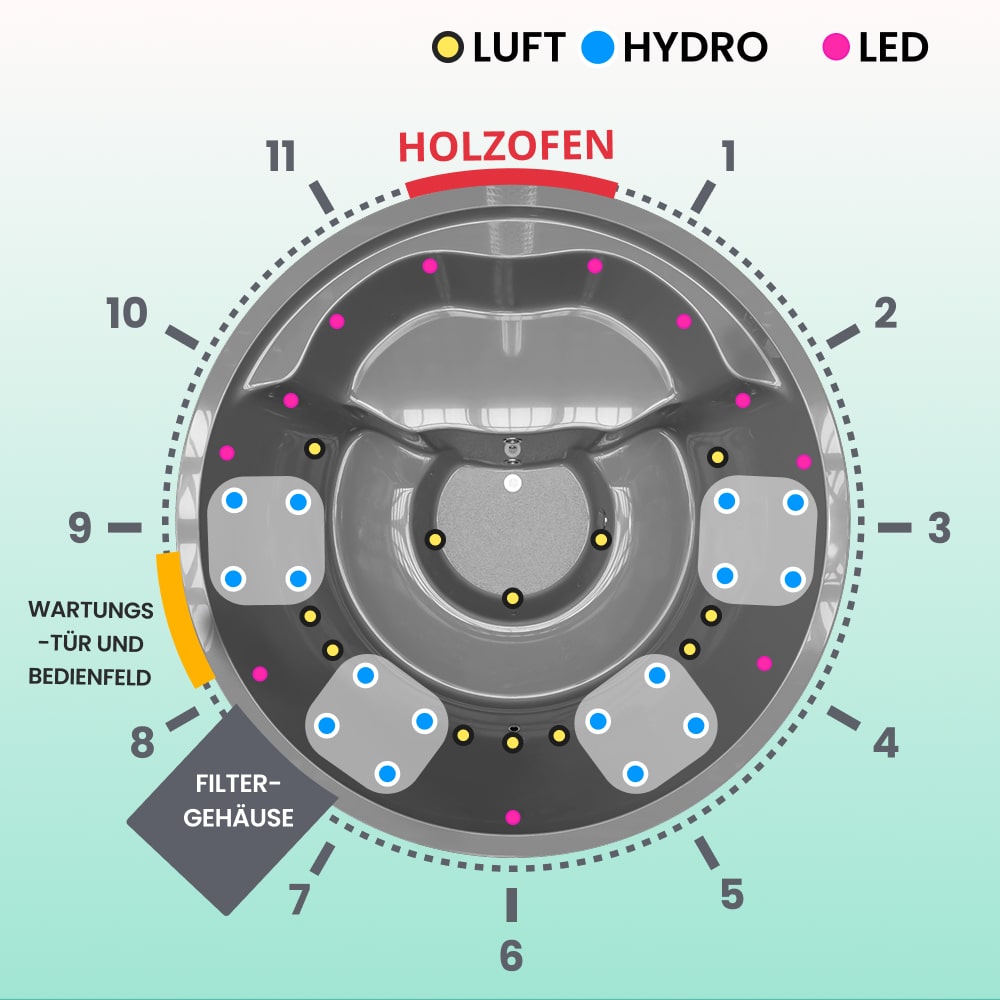 Hot Tub GFK | Bestseller-Konfiguration | 16 Hydro- und 12 Luftdüsen