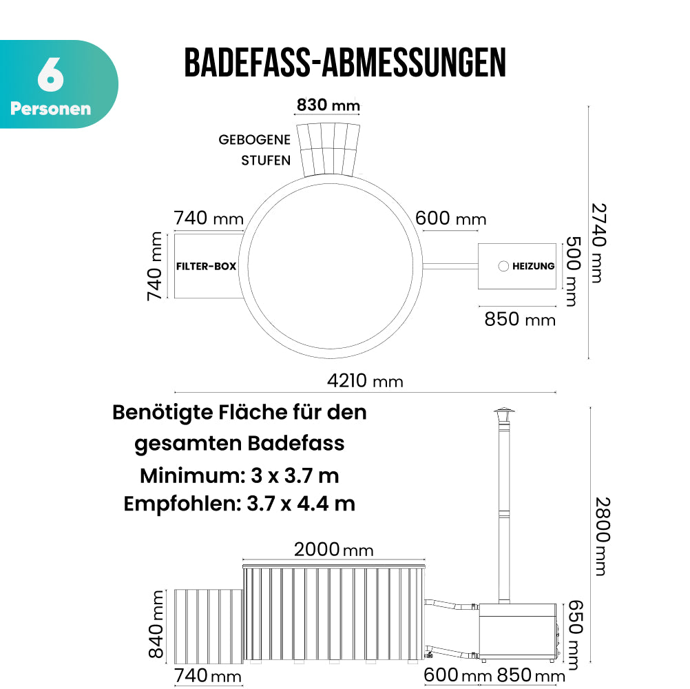 - 4-6 Personen Hot Tub Badefass Einsatz aus Acryl (2370€)