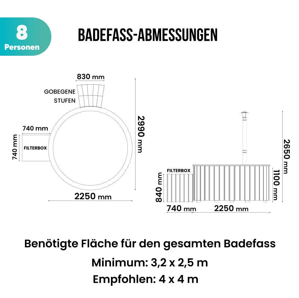 Die beste Konfiguration XL Hot Tube Whirlpool mit Ofen 6-8 | Filteranlage mit Sandfilter, UV-C, 3kW