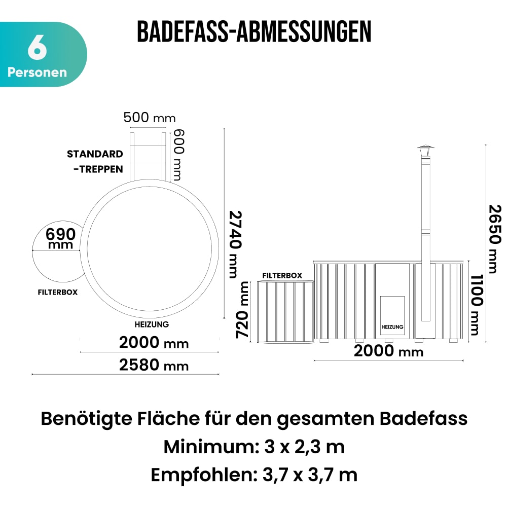 • 6 Personen Hot Tub Badefass Einsatz aus Acryl (Farbe des Einsatzes unten wählbar) (1918€)