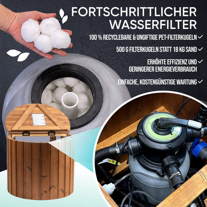 • Sandfilter (Faserball-Filtersystem & runder Filterkasten) (650€)